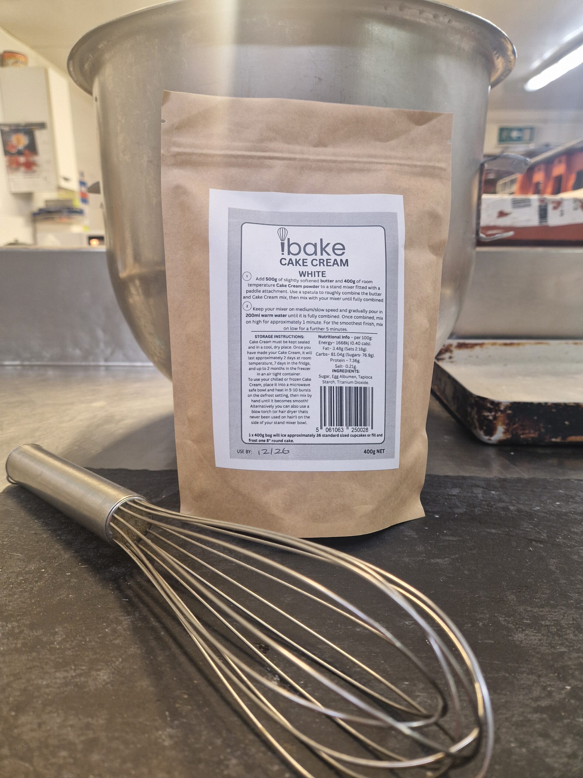 - Add 500g of slightly softened butter, and 400g of room temperature Cake Cream Powder to a stand mix fitted with a paddle attachment. Use a spatula to roughly combine the butter and Cake Cream mix, then use your mixer to finish the magic until the ingredients are fully combined.
